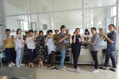 敬老的光榮傳統(tǒng),集團(tuán)女工委特意邀請退休職工張大姐進(jìn)行現(xiàn)場指導(dǎo)。配料、折葉、扎繩、蒸煮,大家分工明確、各顯其能,整個(gè)過程充滿了歡聲笑語。經(jīng)過辛勤勞作,幾百個(gè)形態(tài)各異的粽子新鮮出爐,清爽甘醇的味道飄滿了整個(gè)食堂,看著大家熱火朝天的勁頭,張大姐不時(shí)給予了贊許的目光。