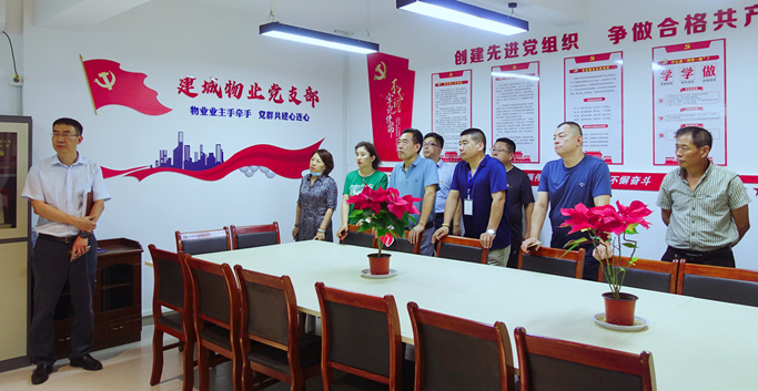 話黨建、共交流、拓思路、謀發(fā)展。為進(jìn)一步加強(qiáng)黨建互動,積極交流先進(jìn)經(jīng)驗(yàn),切實(shí)提高集團(tuán)黨建工作水平,7月21日,集團(tuán)黨委副書記孫曉東同志、黨委委員呂文秀同志帶隊(duì),組織集團(tuán)黨務(wù)工作者來到建城物業(yè)公司,學(xué)習(xí)觀摩紅色物業(yè)黨建陣地。