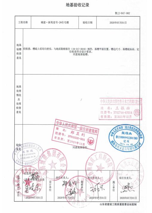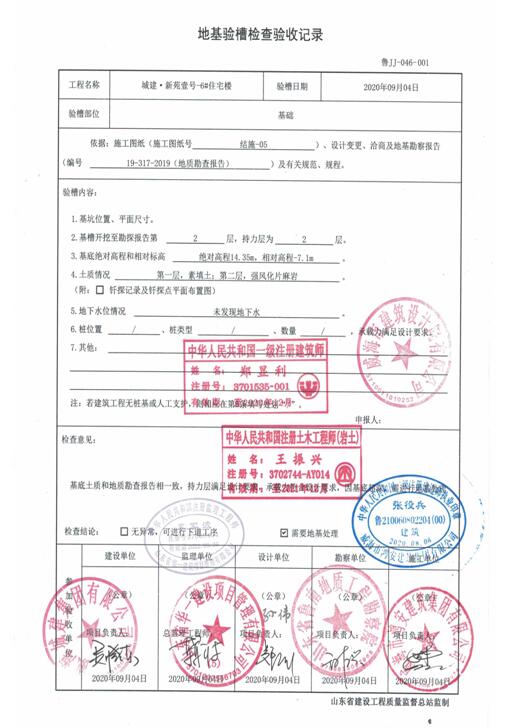 勘察單位:山東省魯南地質(zhì)工程勘察院 負責人:王振興