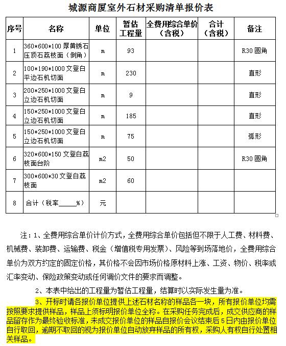 (5)采購范圍:城源商廈室外石材的采購、運(yùn)輸、裝卸等相關(guān)工作,具體內(nèi)容詳見采購文件。