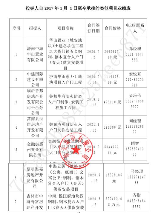 摘要: 城建?新苑壹號入戶門、樓宇門、儲(chǔ)藏室門、一層外門等制作、安裝工程中標(biāo)結(jié)果公告一、項(xiàng)目編號:cgsq2021067二、項(xiàng)目(包段)名稱:城建?新苑壹號入戶門、樓宇門、儲(chǔ)藏室門、一層外門等制作、安裝工程三、開標(biāo)時(shí)間:2021年9月16日四、中標(biāo)信息標(biāo)包中標(biāo)人名稱地址中標(biāo)金額(元…